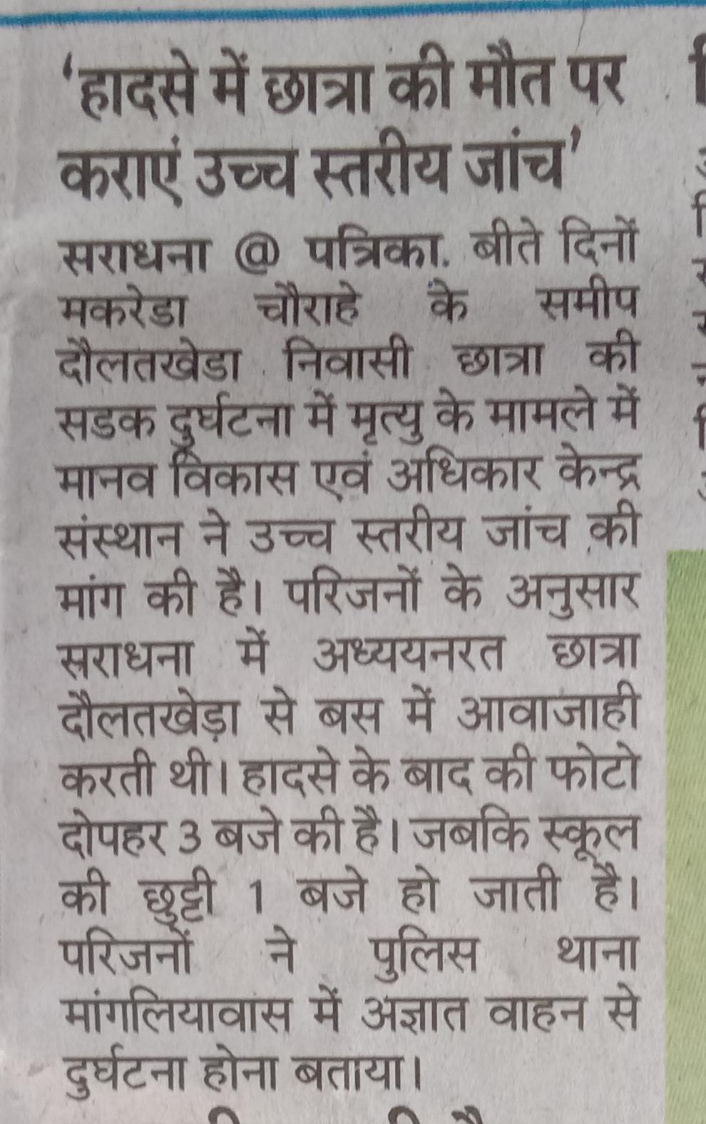 मानव विकास एवं अधिकार केन्द्र संस्थान ने ली ग्राम नोसल की समस्याओं का जायजा